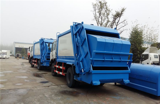 选装多种翻桶(斗)机构 不同用户可根据不同的垃圾搜集方式,选装不同的翻桶(斗)机构:翻标准垃圾铁桶ZBT59003-88(300 L)、塑料垃圾桶(240L)、随车小垃圾斗、密封遮盖式垃圾斗、大垃圾斗。