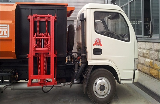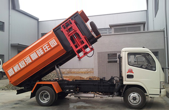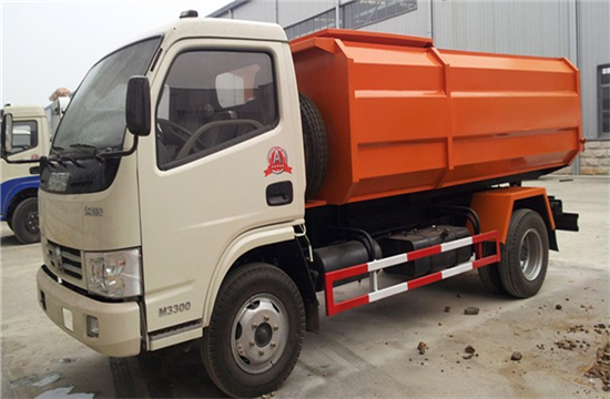 工作原理:自装卸式垃圾车是由密封式垃圾厢、液压系统、操作系统组成,能配几十个垃圾桶,实现一车与多个垃圾桶联合作业,厢体上的液压升降装置可将垃圾桶吊上、放下,上下升降,上下一次工作循环时间为50S,密封式厢体环保卫生,可避免二次污染。其自装式的挂桶装置可直接将路边的垃圾桶挂在上面用提升机直接到在垃圾箱体里面省去了装垃圾的麻烦。