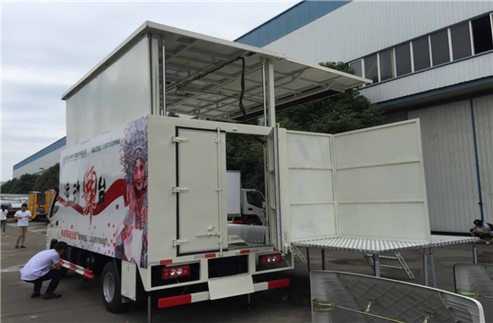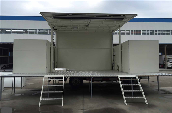| 整车说明: | 安装具有卫星定位功能的行驶记录仪。ABS型号为APG3550500A, 生产企业为浙江亚太机电股份有限公司.ABS型号为ABS-E,生产企业为威伯科汽车控制系统()有限公司。侧,后防护装置材料:Q235A碳钢,焊接,后防护断面尺寸(宽×高)(mm)50×100,离地高430mm。车辆尾部选装无拐臂。货厢顶部封闭,不可开启。专用装置:折叠式平台,支腿,顶棚,作业时两侧侧板展开随顶部一起举升,侧板可向下展开平铺形成舞台地板,内藏折叠式舞台板。 | ||