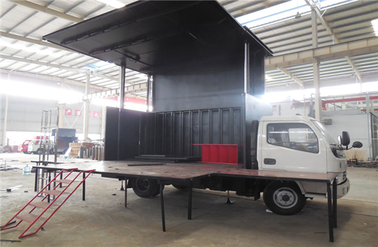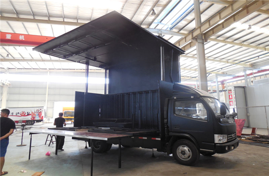 | 整车说明: | 随底盘选装驾驶室。外观喷涂可发生变化。车厢顶棚封闭,并采用衍架结构,可升降,车厢两侧板可展开,与顶棚形成整车舞台顶棚;活动舞台板可折叠于车厢内,通过展开装置展后与固定舞台台面形成整车舞台台面;底盘大梁部分设有支撑装置。侧防护与车辆结构为一体,后防护采用冷弯型钢/Q235-A,焊接连接,后防护截面高度尺寸80mm, 截面宽度尺寸40mm,下边缘离地高度380mm。ABS厂家及型号:襄阳东风隆诚机械有限责任公司/ABS/ASR-24V-4S/4M。 | ||