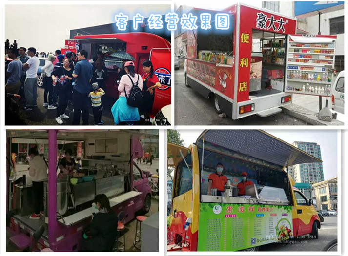 通过在专业的汽车上安装冰激凌机、饮料机、冰箱等食品机械,在车上可以现场制作冰激