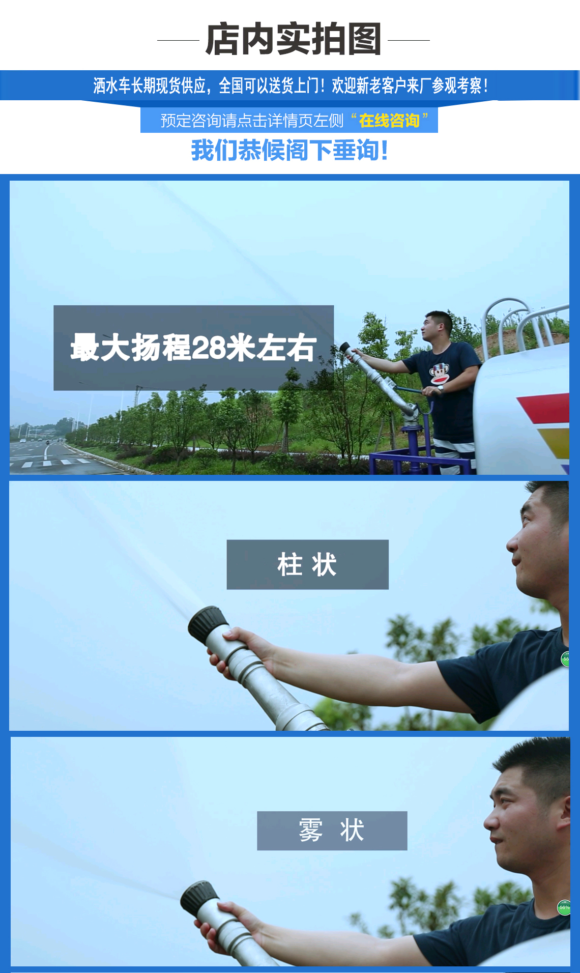 | 产品名称: | 洒水车 | 外型尺寸(mm): | 7060,7260×2250,2350×2800,2950(mm) |