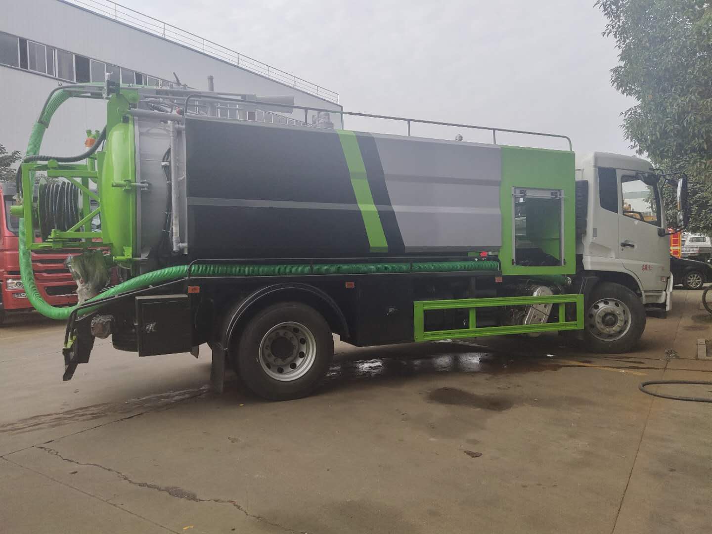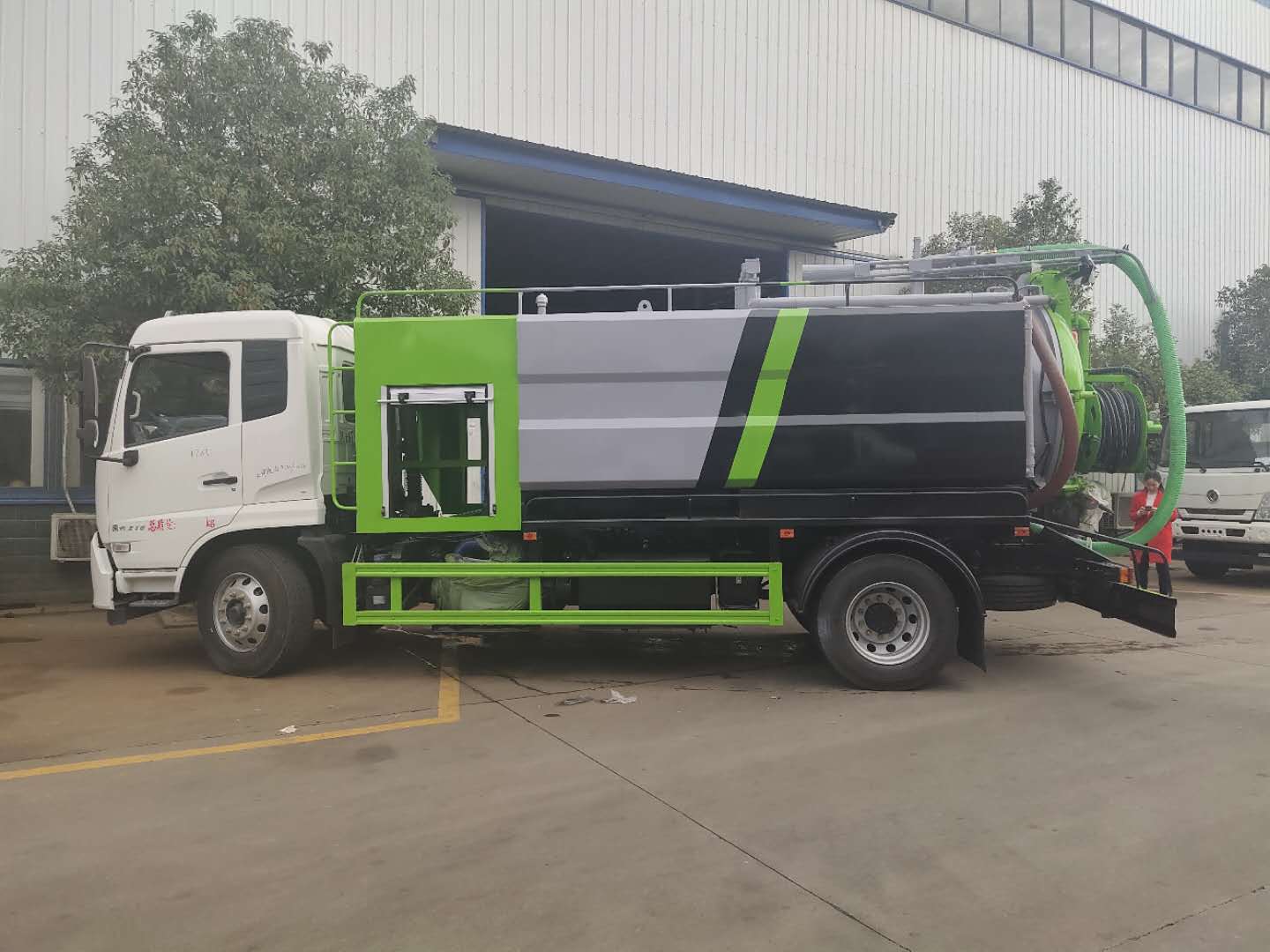 | 整车说明: | 该车装有取力器,真空泵,液压调杆或手动吊杆用于吸污;装有高压水泵,高压水管用于清洗;罐体前部长(mm):1200,用于安装高压泵专用装置;吸污罐罐体有效容积:7.92立方米;1,罐外形尺寸(直线段长×直径)为(mm):4000×1600时,对应整车长/轴距/高度/后悬为:8600/5300(5000)/3550/1870(2170),8600/4700(4500)/3550/2470(2670);2,罐外形尺寸(直线段长×直径)为(mm):3050×1800时,对应整车长/轴距/高度/后悬为:7700/3950/3750/2320,7700/3050×1800/4200(3800)/3750/2070(2470);两侧水箱有效容积:4.32立方米;吸污罐和水箱为两个独立容器,不能同时满载;防护材料:Q235A碳钢,连接方式:左右侧面及后下部防护均采用焊接连接,后部防护断面尺寸(mm):280×50,后部防护离地高度(mm):490;随底盘选装驾驶室;ABS型号/生产厂家:3631010-C2000/东科克诺尔商用车制动系统(十堰)有限公司,ABS 8/东科克诺尔商用车制动系统(十堰)有限公司, 4460046450/威伯科汽车控制系统()有限公司;选装不带吊杆。 | ||