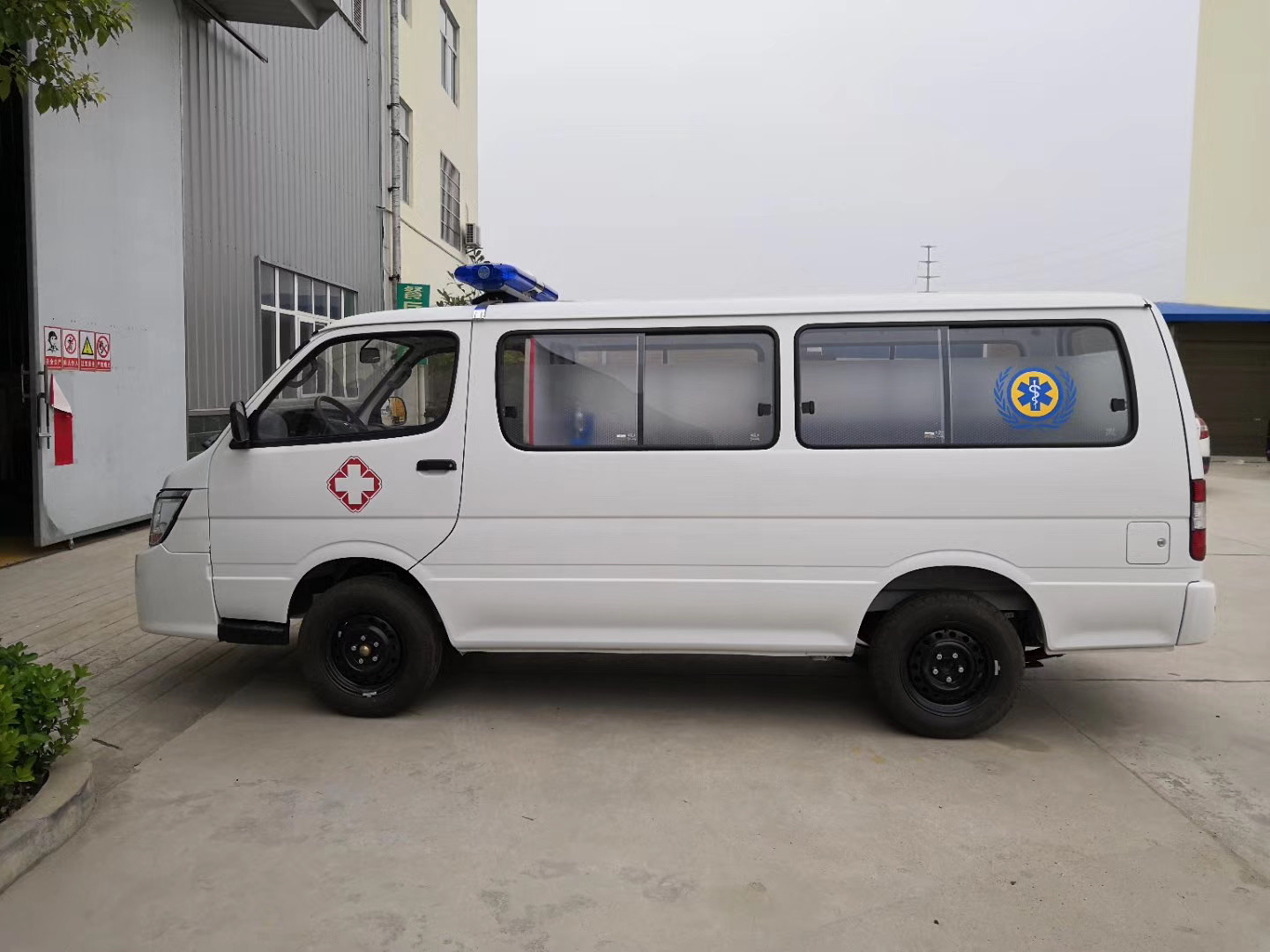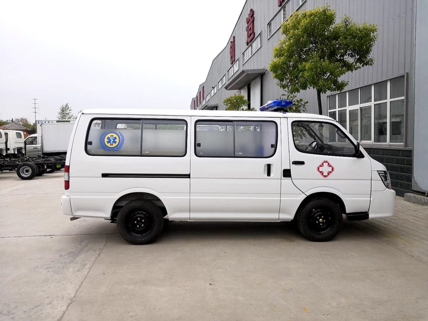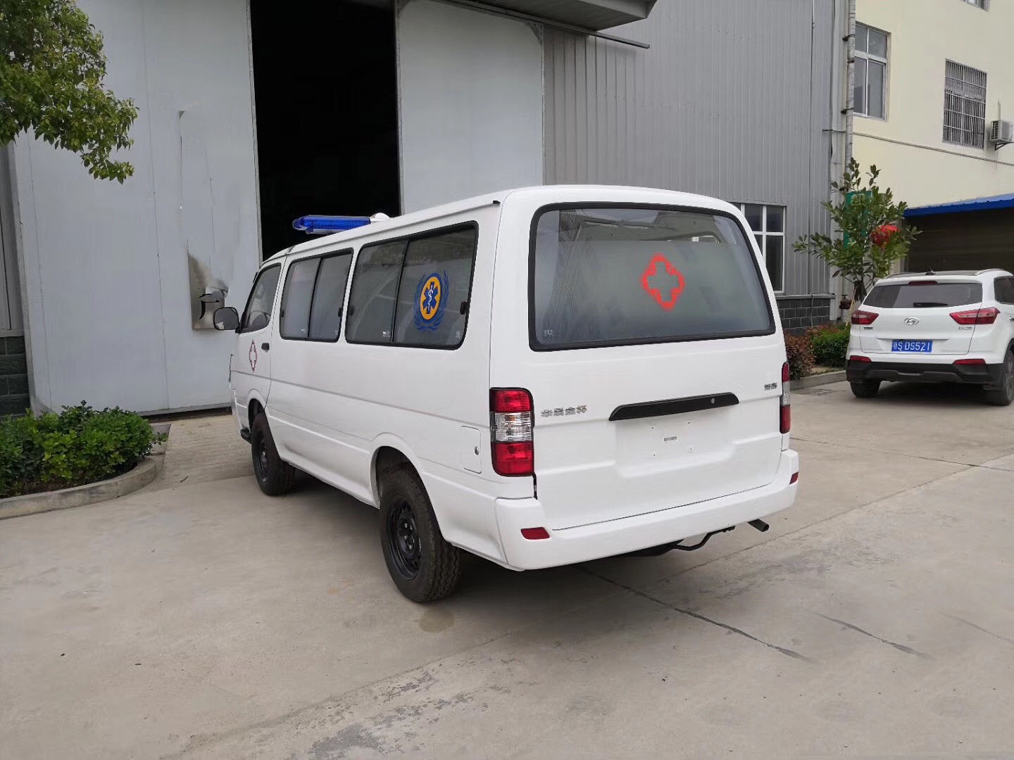 选装前部灯具,选装前散热器格栅,选装后部灯具,选装后洗涤喷嘴,后洗涤器,选装轮毂,选装不带前雾灯(附照片);选装平顶(附照片)。该车型装备中间隔墙、铝合金担架床、折叠顺排座椅、氧气瓶、医用箱、紫外线消毒灯、滴流瓶架、救护标识等专用设施,具有救护及运送伤病员功能,提供内部照片。发动机的大净功率为90kW。ABS系统生产厂家为博世汽车部件(苏州)有限公司,ABS系统的型号为2D21-3755640。 |