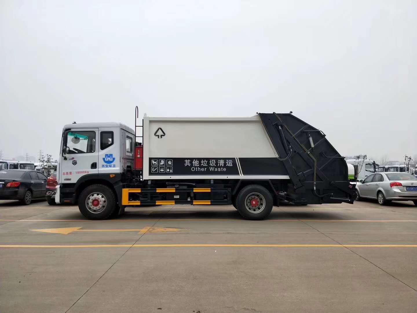 | 工作原理及特点描述 | 整车为全密封型,采用电液一体化技术,借助机、电、液联合自动控制系统,通过车厢、填装器和推铲等专用装置,实现垃圾倒入、压碎或压扁、强力装填,把垃圾挤入车厢并压实和推卸。压缩过程中的污水全部进入污水厢,较为彻底的解决了垃圾运输过程中的二次污染的问题。 |