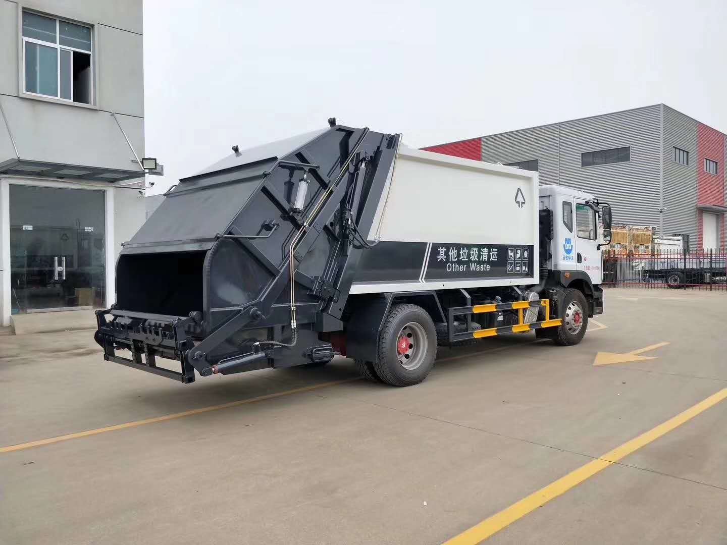 专用部分介绍上装部分由密封式垃圾厢、装填器、推铲、液压传动系统和电气控制系统组成。 工作原理及特点描述 整车为全密封型,采用电液一体化技术,借助机、电、液联合自动控制系统,通过车厢、填装器和推铲等专用装置,实现垃圾倒入、压碎或压扁、强力装填,把垃圾挤入车厢并压实和推卸。压缩过程中的污水全部进入污水厢,较为彻底的解决了垃圾运输过程中的二次污染的问题。