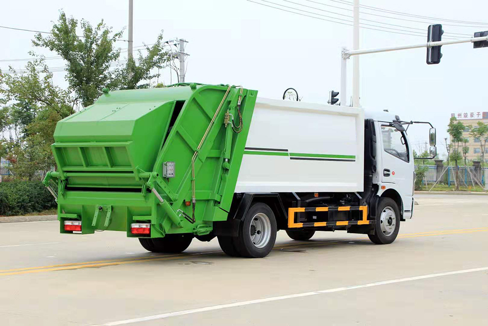 专用部分介绍上装部分由密封式垃圾厢、装填器、推铲、液压传动系统和电气控制系统组成。 工作原理及特点描述 整车为全密封型,采用电液一体化技术,借助机、电、液联合自动控制系统,通过车厢、填装器和推铲等专用装置,实现垃圾倒入、压碎或压扁、强力装填,把垃圾挤入车厢并压实和推卸。压缩过程中的污水全部进入污水厢,较为彻底的解决了垃圾运输过程中的二次污染的问题。