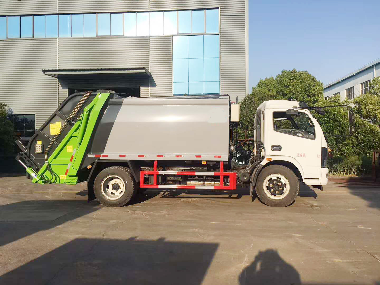 专用部分介绍上装部分由密封式垃圾厢、装填器、推铲、液压传动系统和电气控制系统组成。 工作原理及特点描述 整车为全密封型,采用电液一体化技术,借助机、电、液联合自动控制系统,通过车厢、填装器和推铲等专用装置,实现垃圾倒入、压碎或压扁、强力装填,把垃圾挤入车厢并压实和推卸。压缩过程中的污水全部进入污水厢,较为彻底的解决了垃圾运输过程中的二次污染的问题。