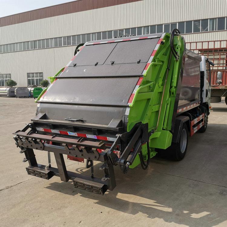 专用部分介绍上装部分由密封式垃圾厢、装填器、推铲、液压传动系统和电气控制系统组成。 工作原理及特点描述 整车为全密封型,采用电液一体化技术,借助机、电、液联合自动控制系统,通过车厢、填装器和推铲等专用装置,实现垃圾倒入、压碎或压扁、强力装填,把垃圾挤入车厢并压实和推卸。压缩过程中的污水全部进入污水厢,较为彻底的解决了垃圾运输过程中的二次污染的问题。