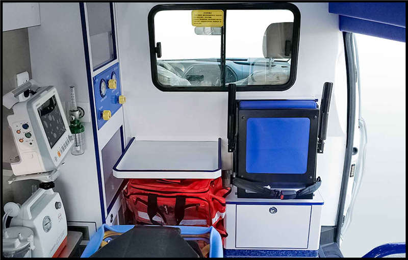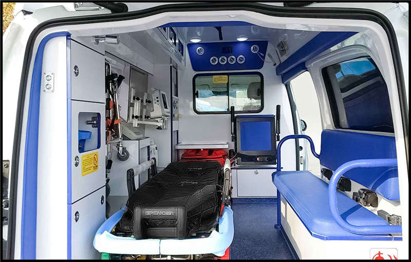 车辆装备空调及内部照明系统,中央电源分配系统,紧急警报系统,对讲系统等设备。车内设置医疗救护仪器柜、药品柜及部分救护用设备仪器,车顶安装救护车用标志灯具。选装平顶时车身高度1998mm,选装顶部造型安装镶嵌式警灯时高度2260mm;ABS厂家: 博世汽车部件(苏州)有限公司, ABS型号: ESP9。净功率:155kW。随底盘仅选用:245/45R18 (增强型)、235/55R17。选装不同外形的救护车用标志灯具。